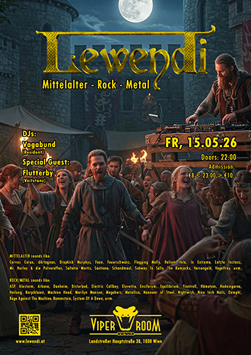 Wir laden zum Lewendi – The Next Generation! Es wird ab dem Jahr 2026 abwechselnd Gast-DJs geben, die schon darauf brennen, euch auf der Tanzfläche einzuheizen! Somit wollen wir nach zehn Jahren etwas mehr musikalische Abwechslung bzw. frischen Wind ins Lewendi bringen, um euch weiterhin die wildeste Mittelalter-Metal-Party in noch besserer Qualität bieten zu können!